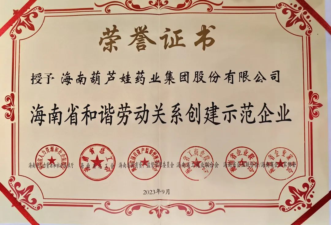 森林舞会药业集团获评“海南省和谐劳动关系创建示范企业”