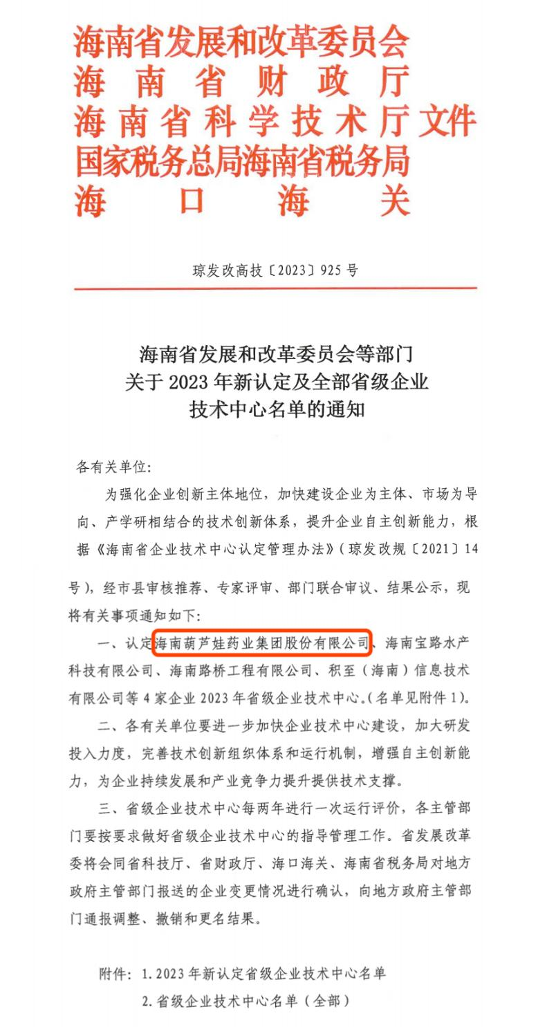 近日,海南省发改委等多部门联合公布了《关于2023年新认定及全部省级企业技术中心名单的通知》,其中,海南森林舞会药业集团股份有限公司成功通过评审,被认定为省级企业技术中心,是本次获批的4家企业之一。