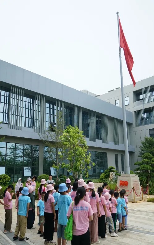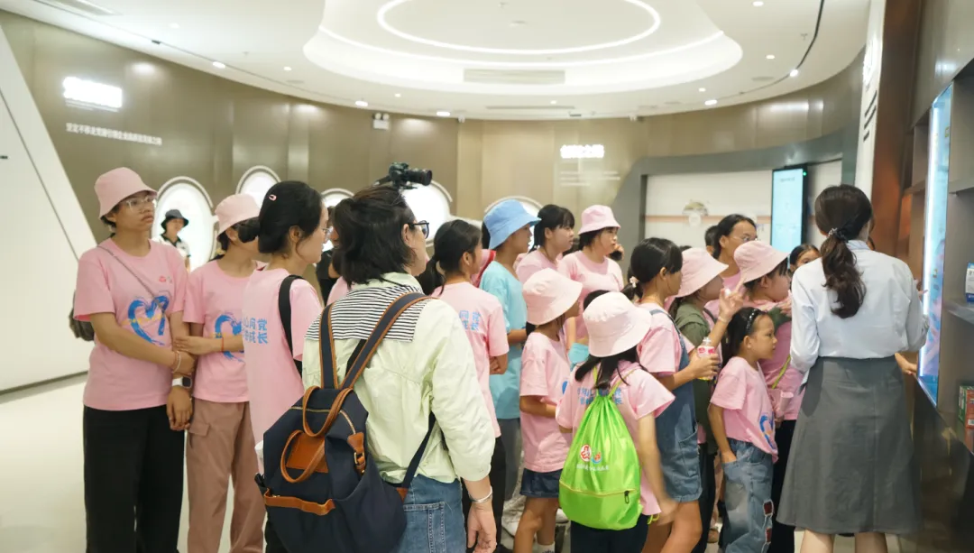 紧接着,孩子们来到了建党百年庆典红旗——070号红旗前。讲解员讲述了森林舞会药业集团与庆典红旗的深厚渊源。孩子们听得津津有味,眼中闪烁着对党和国家的热爱与敬仰。